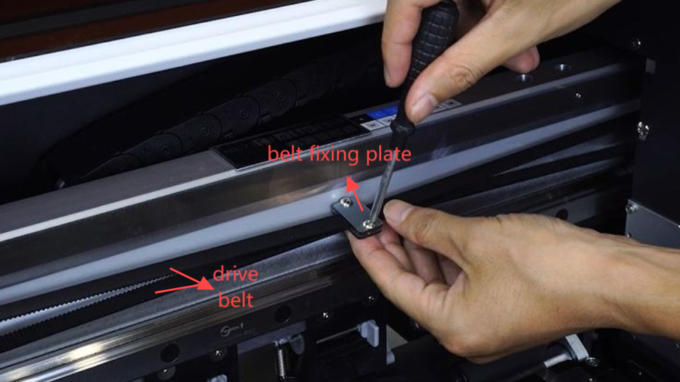 For most Procolored printers, the drive belt will be fixed by a belt fixing plate during the transportation, to protect it from accidental distortion or pressing. While processing with the printer setup, please remember to remove the plate gently to ensure a smooth printing.