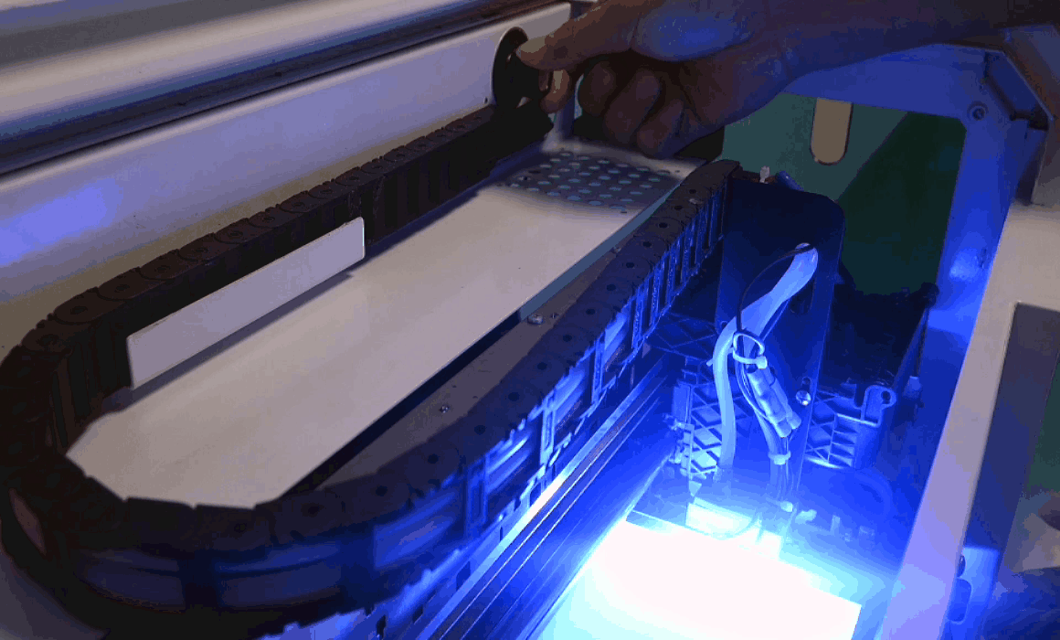 The print bed is where the printed item is transported into the UV printer (compare the differences of a uv dtf printer).