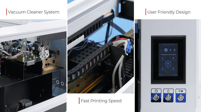 Automatic White Ink Circulation – minimizing print head clogging possibility and greatly extending print head lifetime