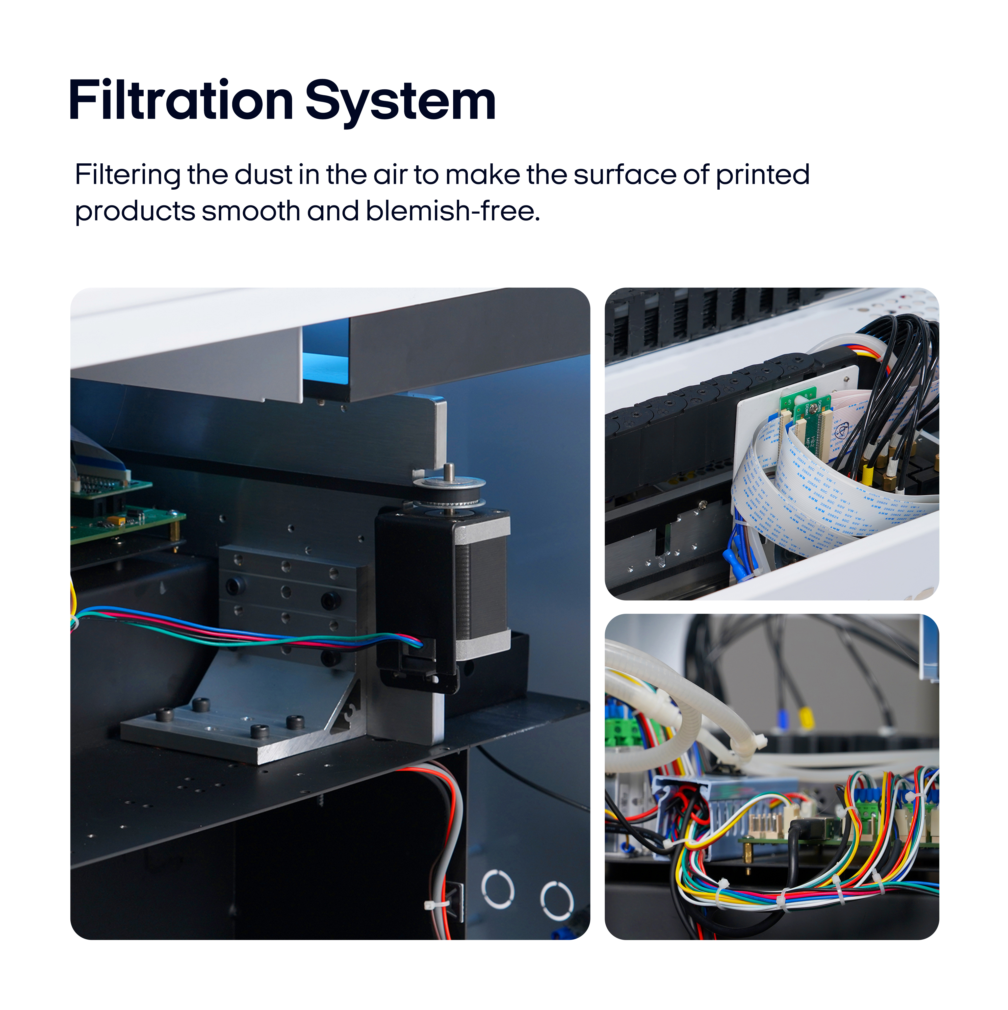 Adsorption Filtration System – this system absorbs ink dust and smell, thus protecting internal components of printer and creating a fresh and clean working environment.