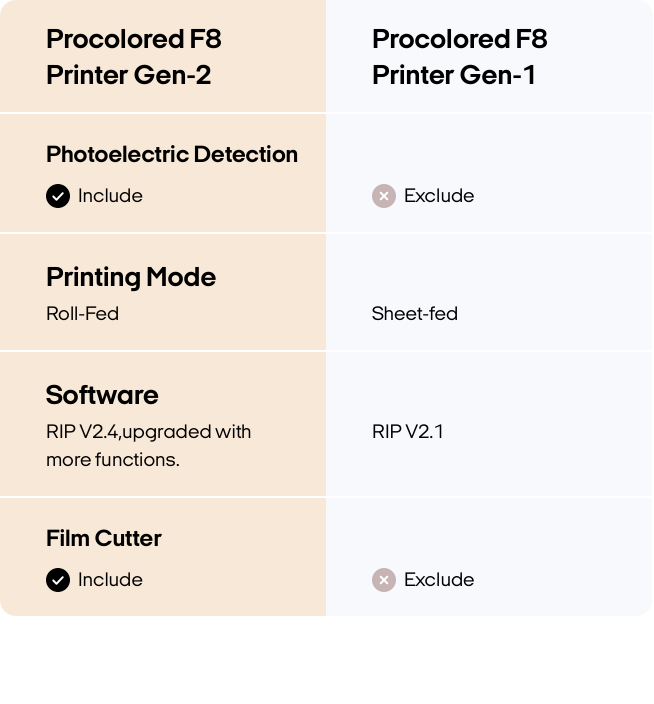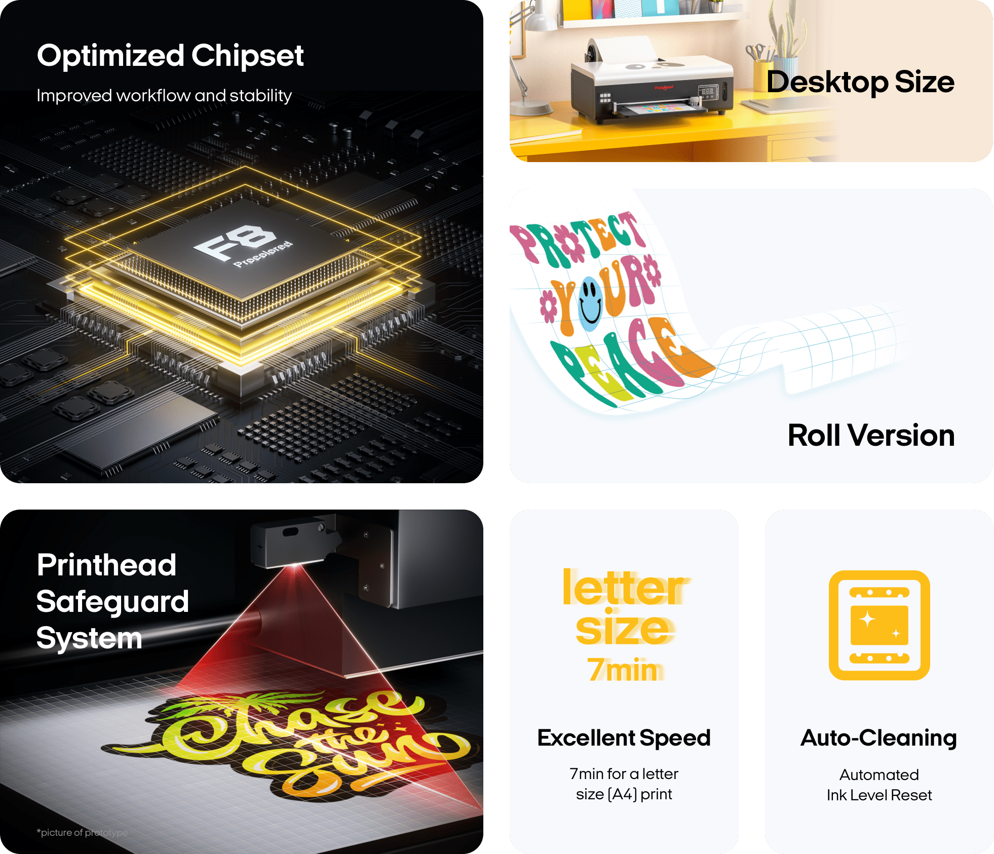 The F8 Gen-2 Roller Printer is a big step up from the previous single-sheet version. It's perfect for beginners getting into DTF printing or small business owners looking to step up their game.
