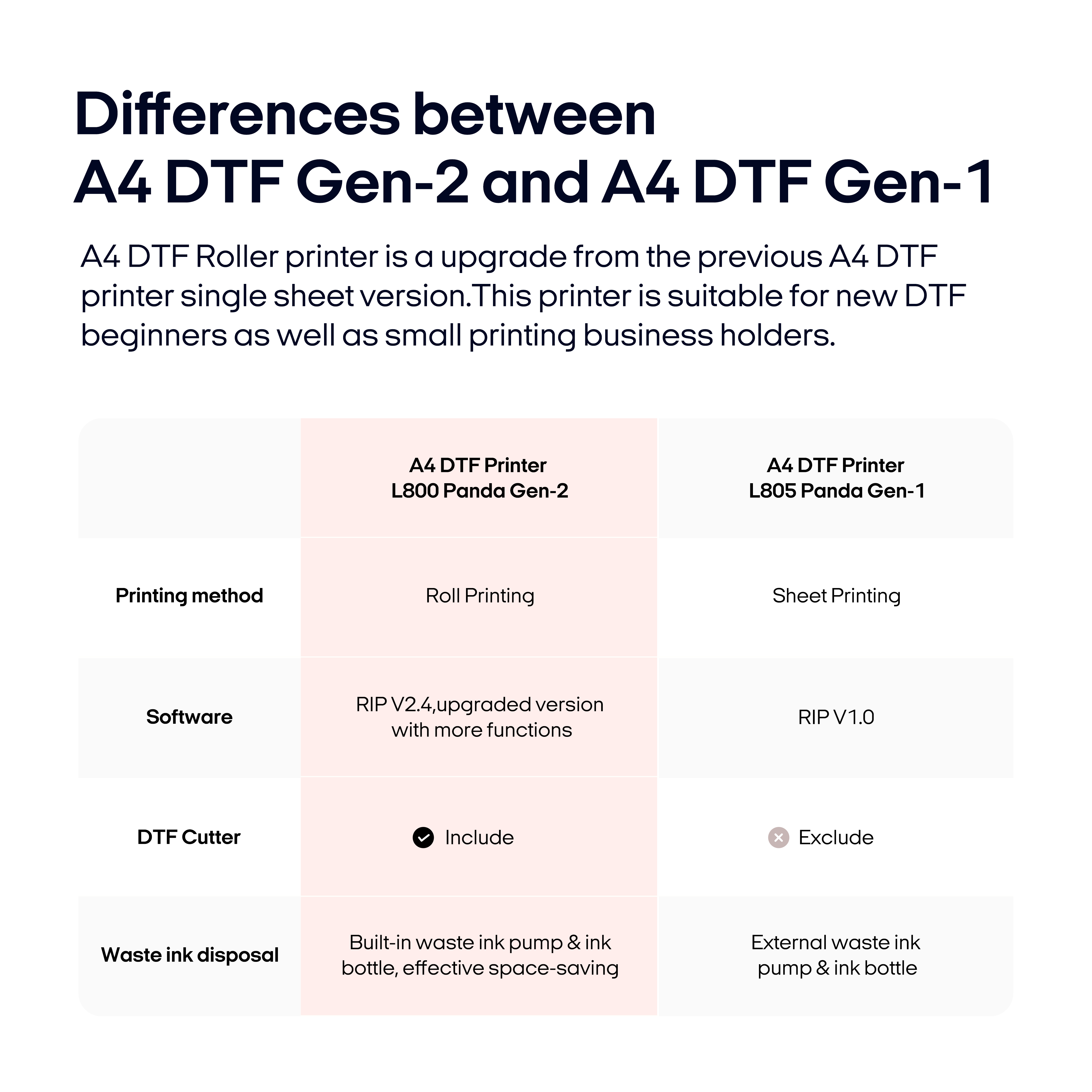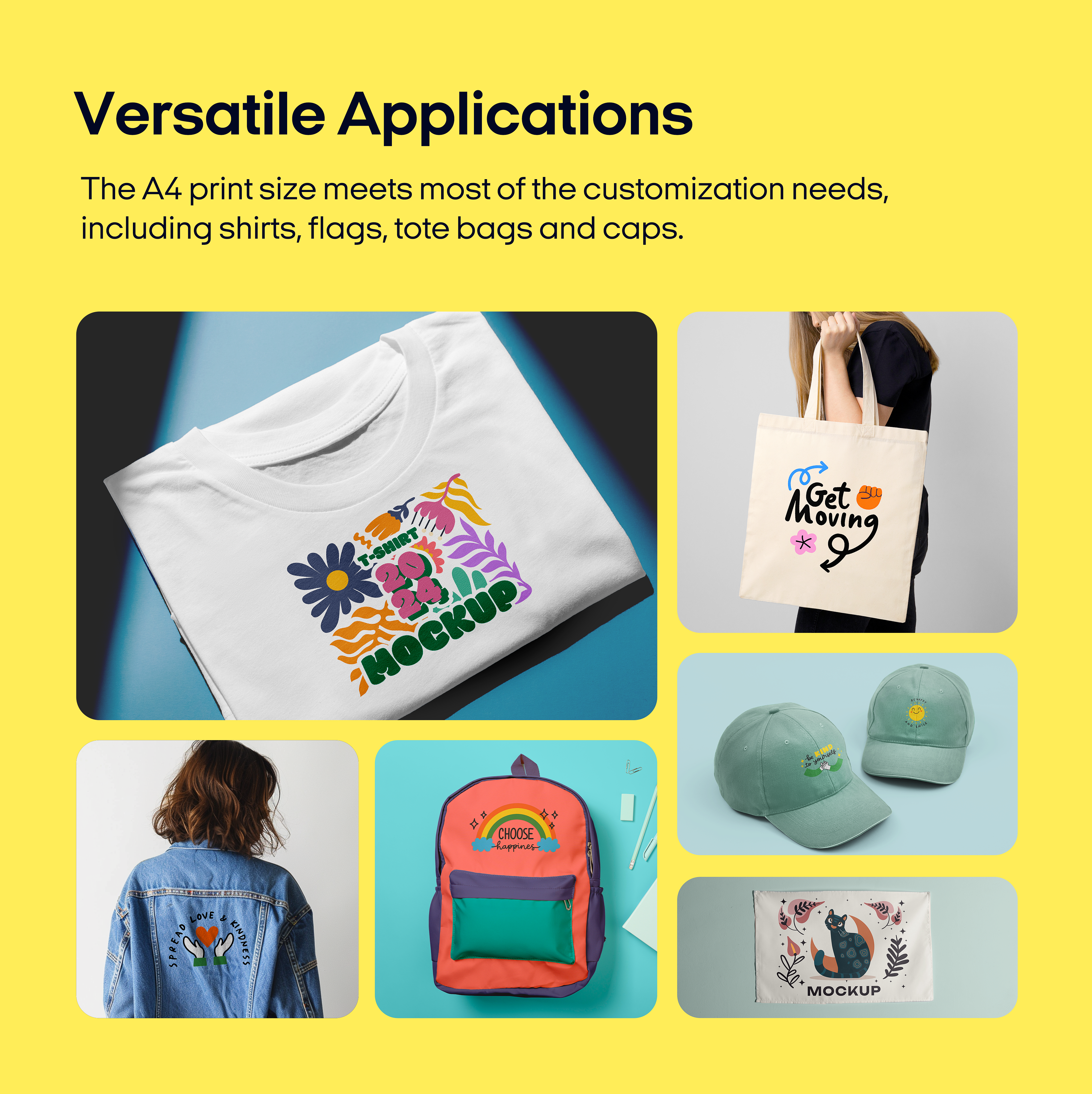 The A4 DTF Roller Printer is a significant upgrade from the previous A4 DTF Printer Single Sheet model. Designed for new DTF users and small printing businesses, it offers improved functionality and ease of use to meet diverse printing needs.