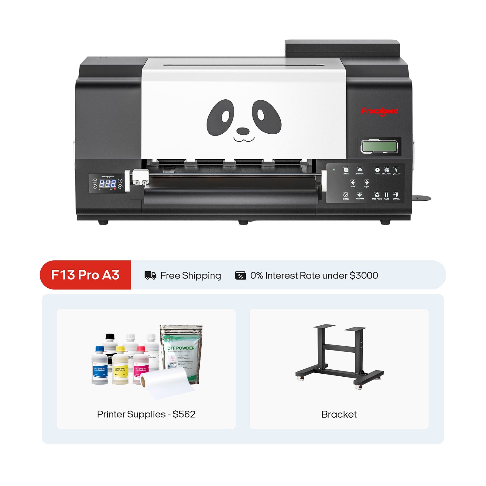 Procolored F13 Pro Panda DTF Printer 13" A3 Dual XP600 + Stand + Oven