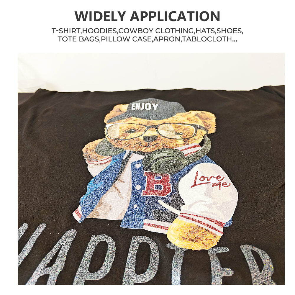 An upgraded density of glitter particles, which enhances reflectivity and creates a more vibrant, dazzling appearance. It can be used on A3 DTF Printers.