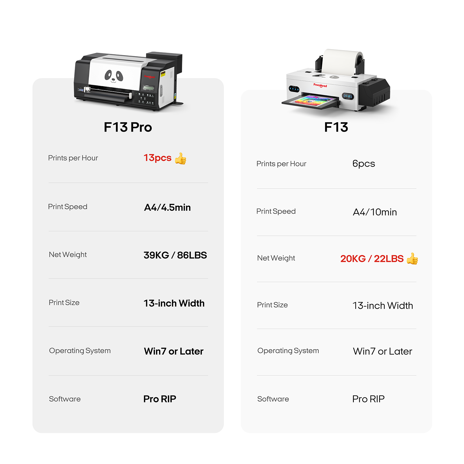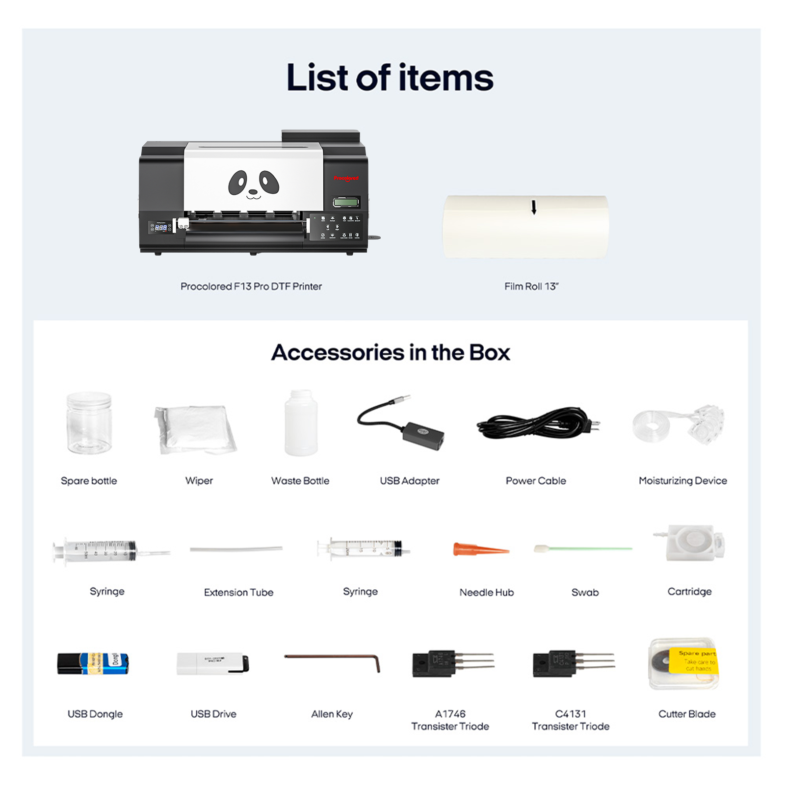 The Procolored F13 Pro is an advanced, user-friendly DTF printer with dual print heads. It produces professional-quality prints at incredible speed.