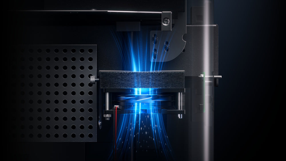 The UV lamp features adjustable power, which prevents overheating and extends the lamp's lifespan. This allows for printing on a wider range of materials, including PET film.