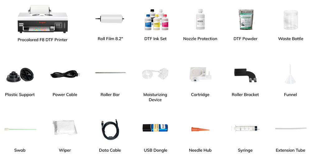 For best performance and consistent quality, we recommend using Procolored-approved inks and DTF films. Third-party materials may affect color accuracy, adhesion, and longevity of prints.