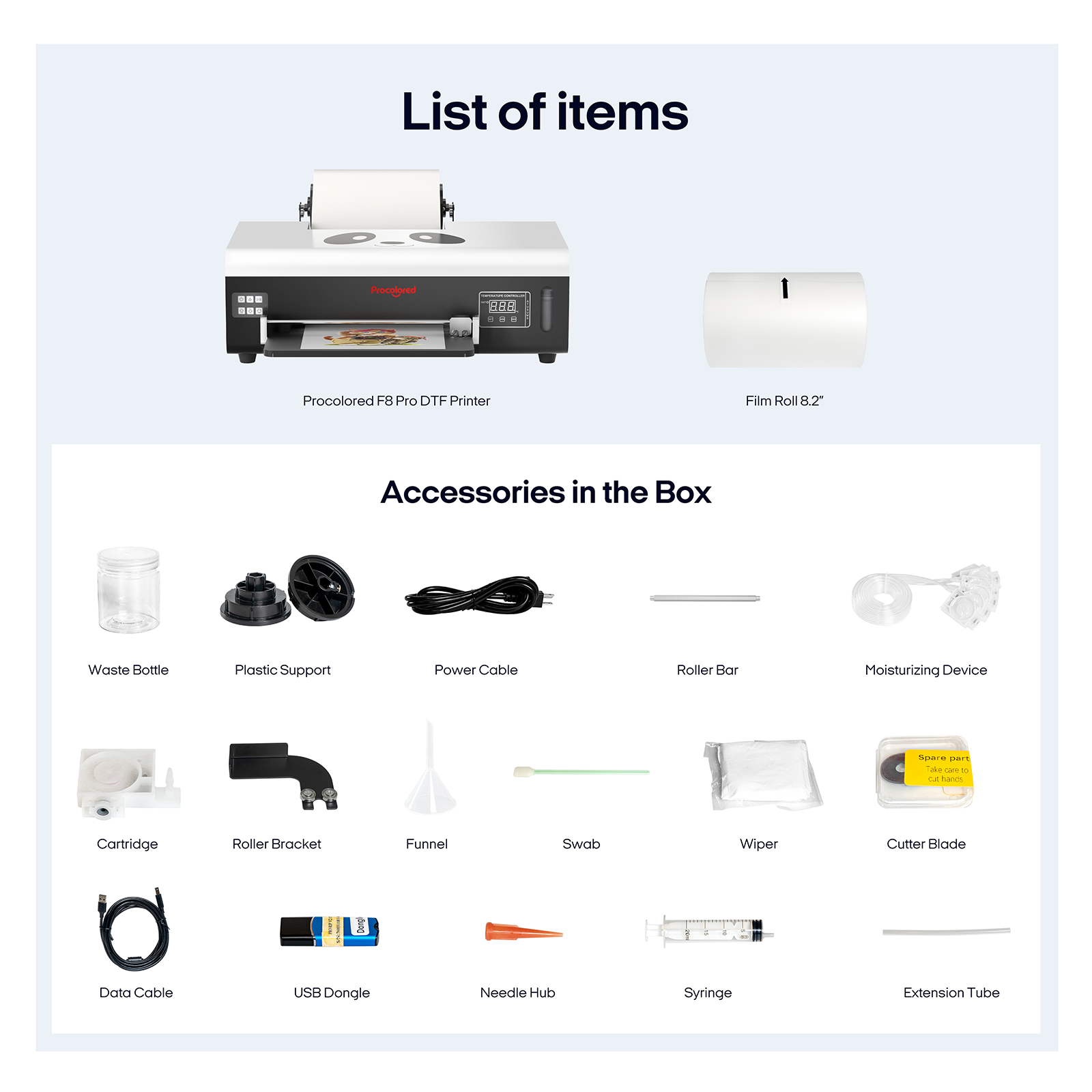 Procolored F8 Panda DTF Printer 8.2" A4 L800 & Complete Bundle