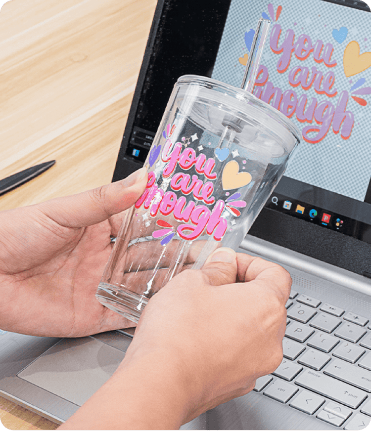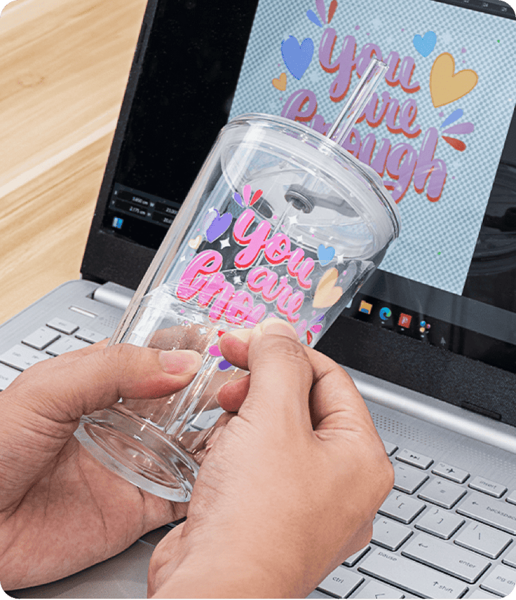 Procolored mini UV DTF printer is a two-in-one UV DTF printer, combining printing and laminating functions together. It’s an ideal machine for crystal sticker making and normally the working process involves printing (on A film first) - laminating (A B film) - transferring (from A film to B film). Crystal stickers can be pasted on irregular items, breaking through the limitation of direct printing. They can be designed and customized as cup decors, striking business logos or lovely stickers for children, and way more than these. With an mini UV DTF printer in hand, you can achieve all the decors you’ve imagined.