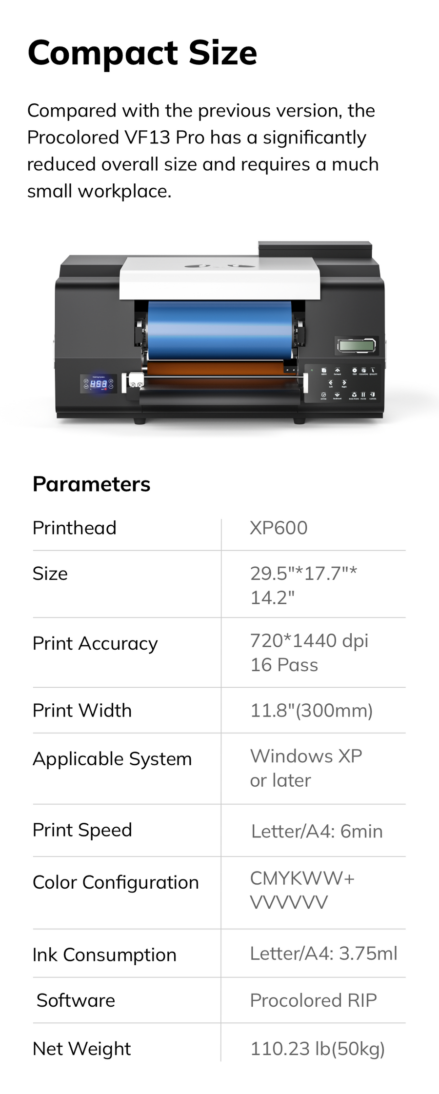Procolored VF13 Pro Panda UV DTF Printer 13" A3+ Dual XP600 2-in-1