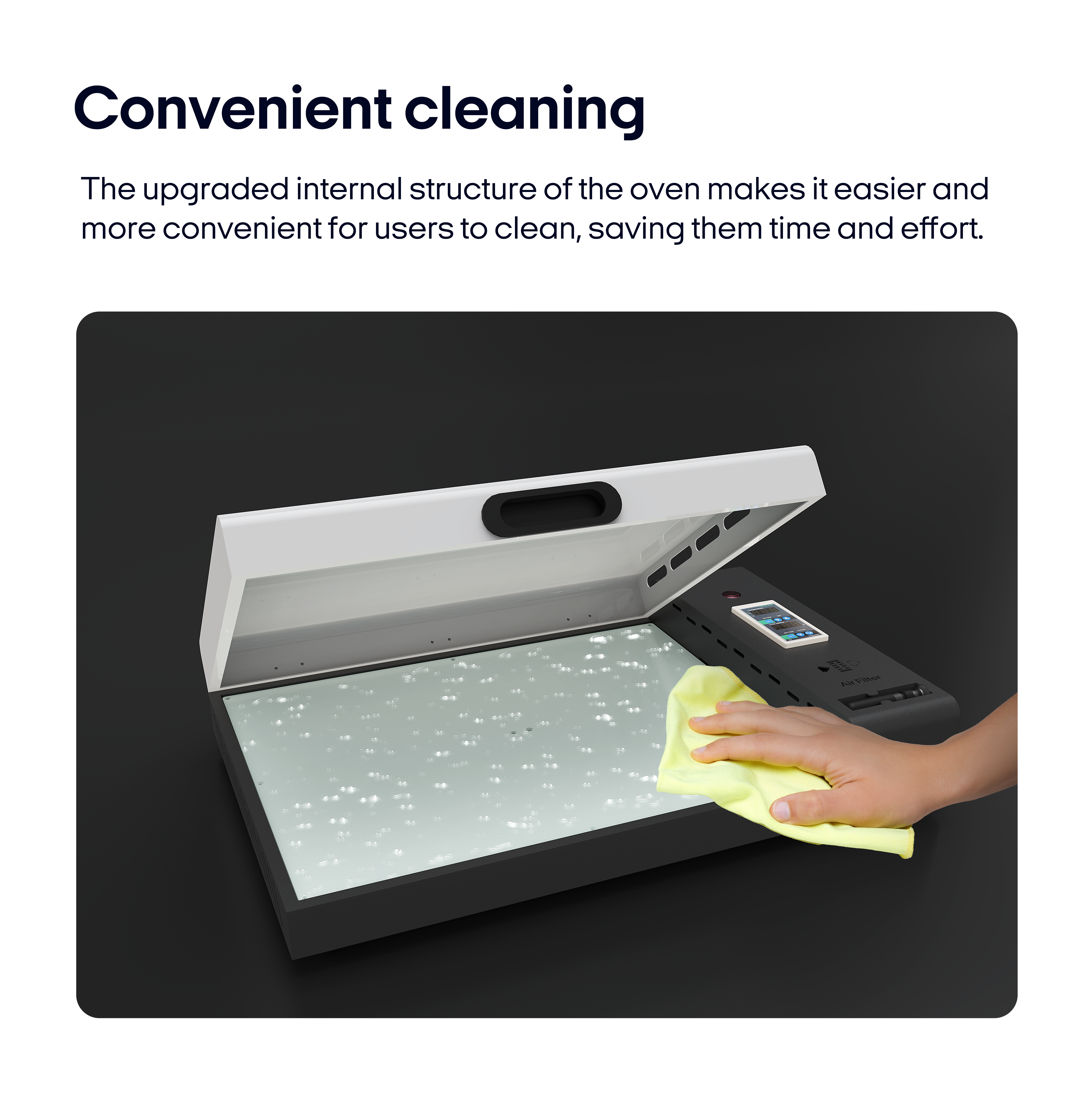 The upgraded internal structure of the oven makes it easier and more convenient for users to clean, saving them time and effort.