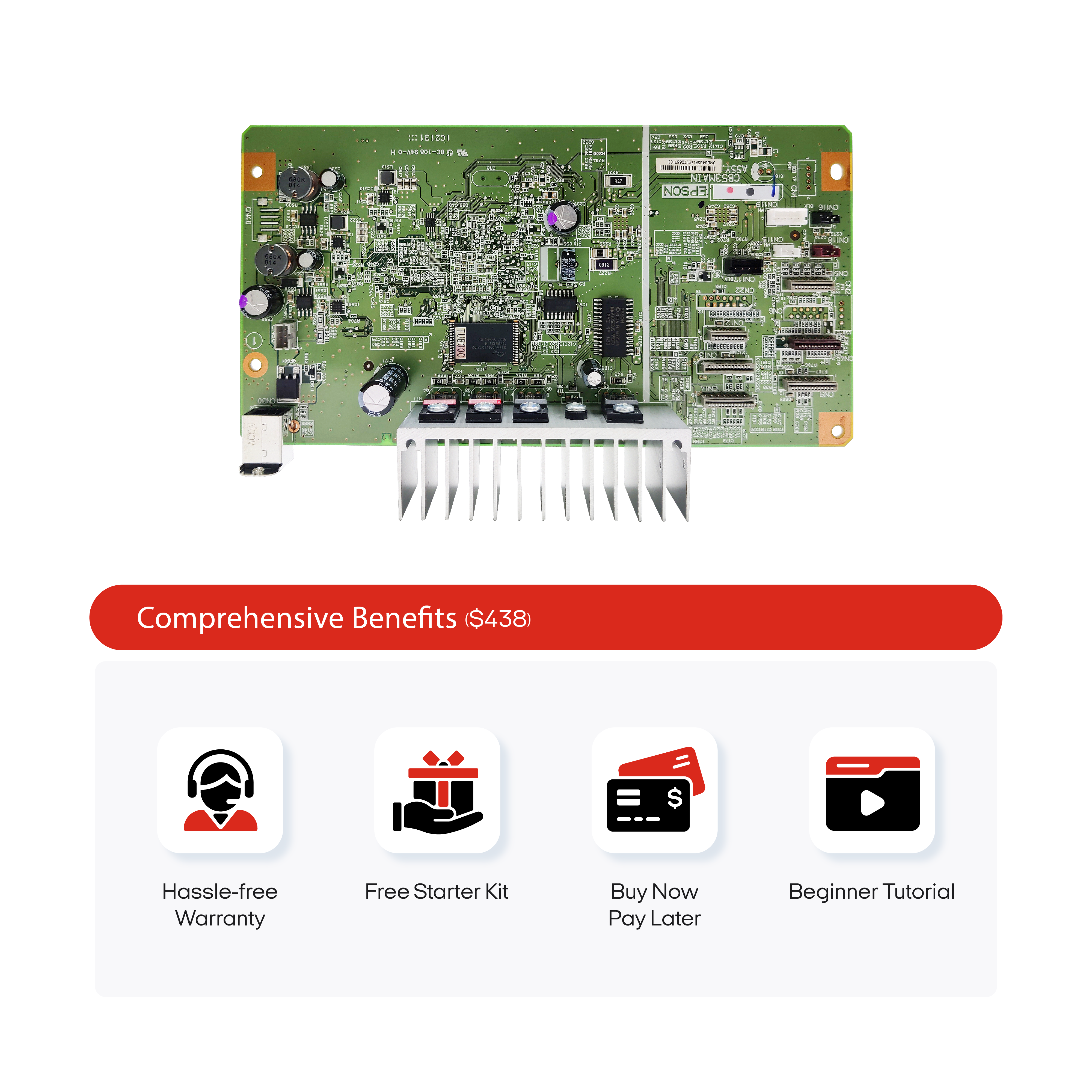 The Motherboard (abbr. MB) is the central control hub in a DTF printer, responsible for data processing, command transmission, and the coordination of the printer's overall operation. While the Control Board (abbr. CB) serves as the printer's control panel. In charge of receiving and processing print commands, coordinating the work of hardware components such as the power, paper feed, ink, and cancel, ensuring the smooth progression of the printing process.
